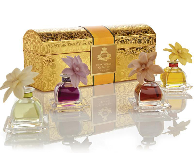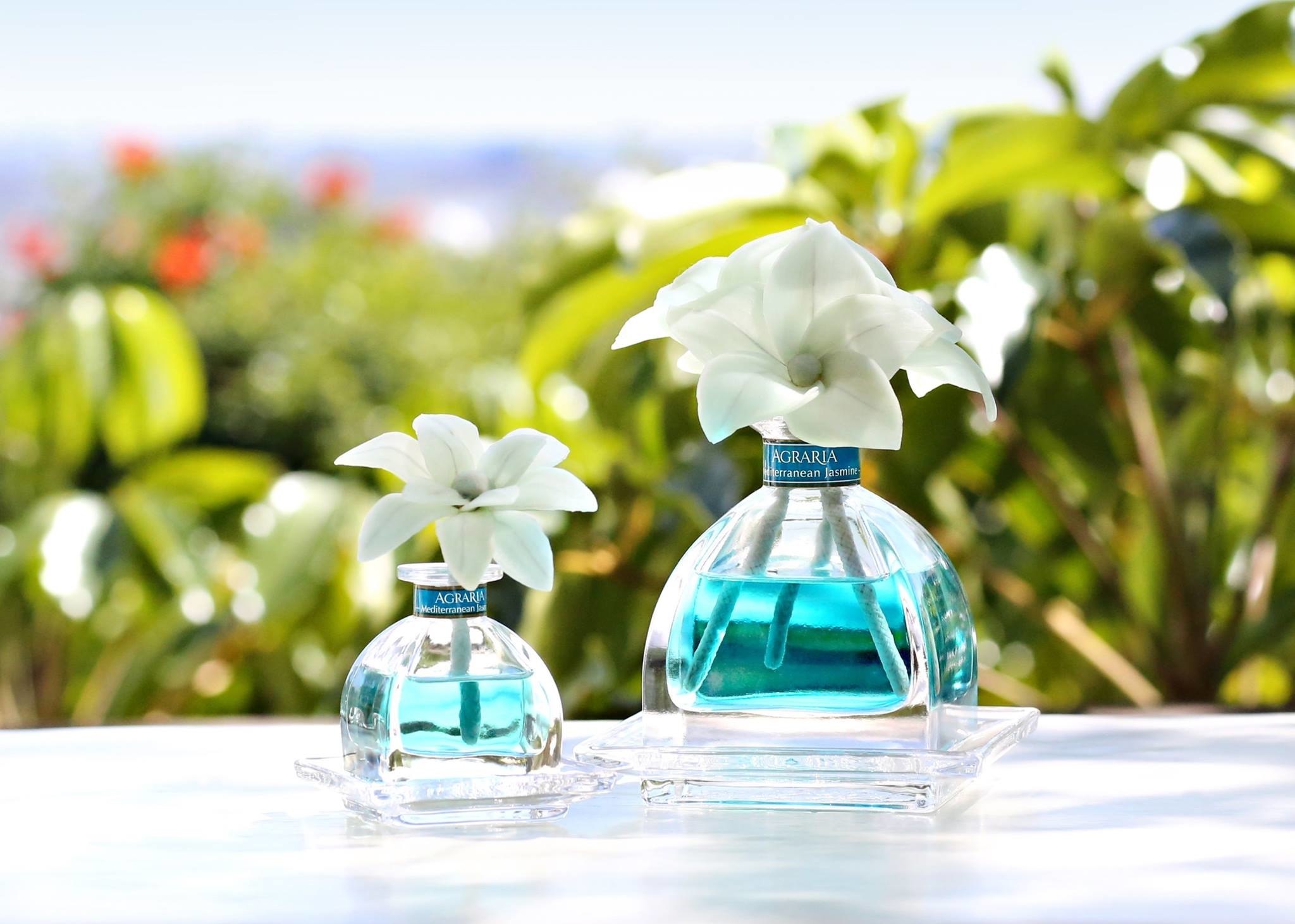 Agraria又誕生了AirEssence(大擴香)及PetiteEssence(小擴香)——液體版本的百花擴香盒——搭配由工藝家使用索拉花的乾果皮手工縫製的索拉花,當香氛精油由棉芯花莖汲取向上至花瓣,「綻放出」美麗又芬芳的索拉花朵,花瓣顏色遂渲染成精油的顏色,香味也隨著花朵瀰漫整個空間。