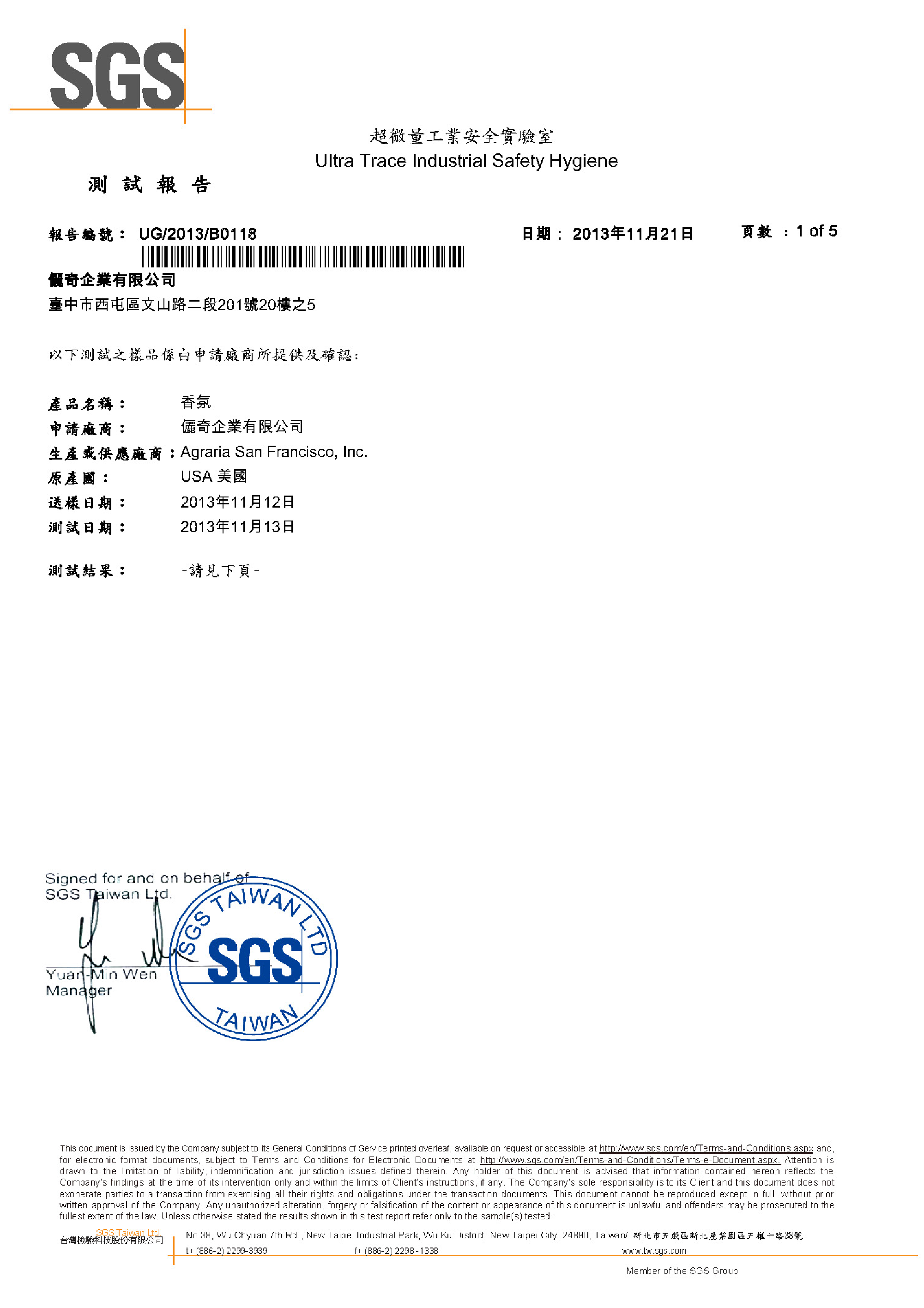 AGRARIA 認證